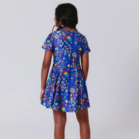 Girls Yankees Short Sleeve Skater Dress Candy Spill Blue